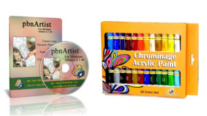The second product is a set of acrylic art paints meant to accompany the pbnArtist software.
