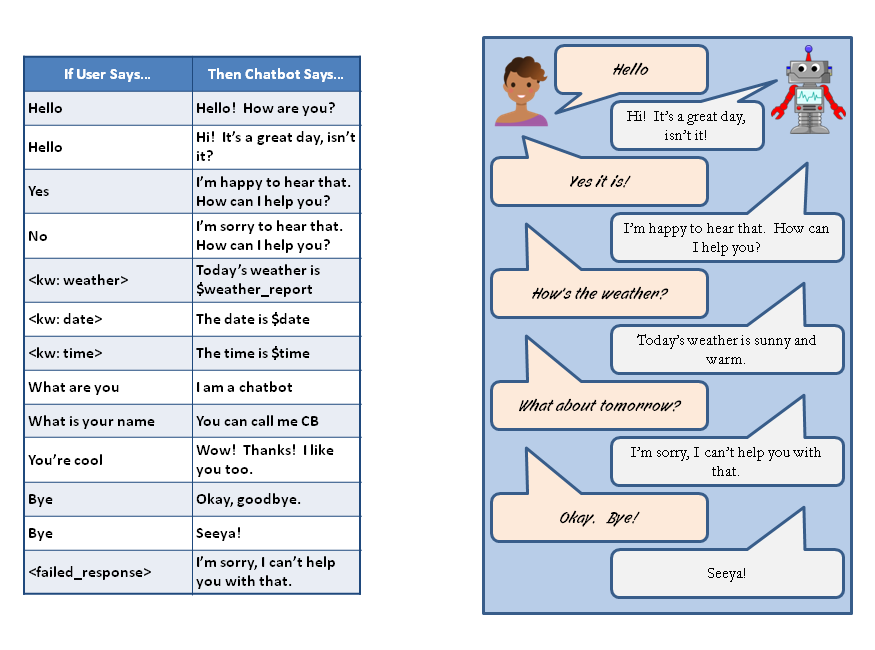 The earliest rule-based chatbots used a spreadsheet to list all possible queries and responses. These chatbots are still useful for answering FAQs.
