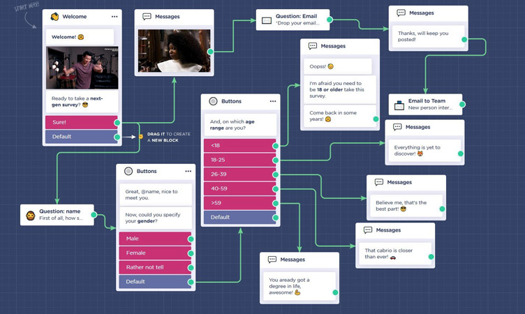 LandBot features an easy-to-use drag-and-drop interface. You can experiment with it by opening a free account on their website.